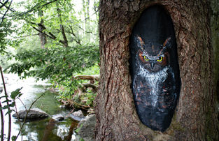 Ein verstecktes Kunstwerk ist diese Eule im Baum in Waldkirch Kollnau an der Elz.